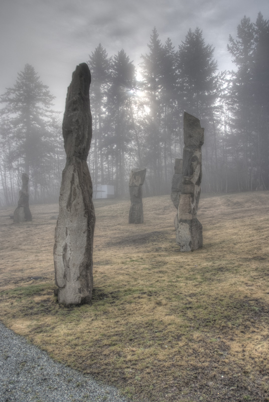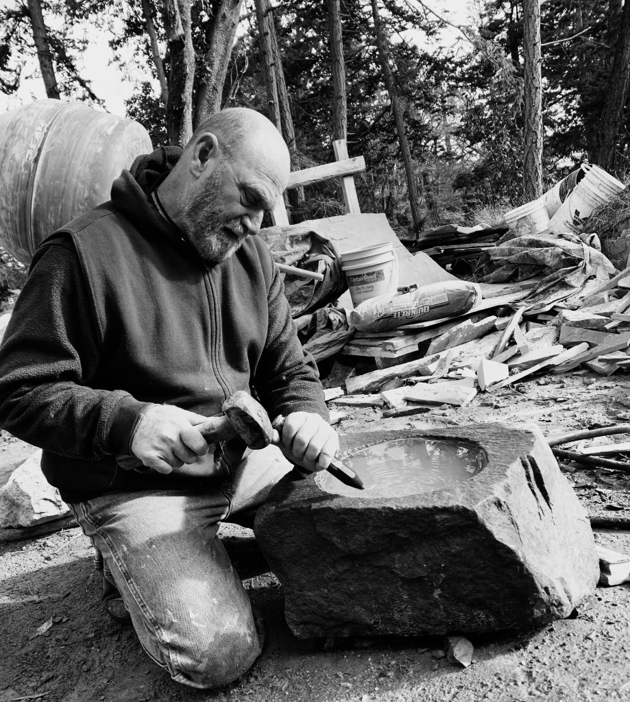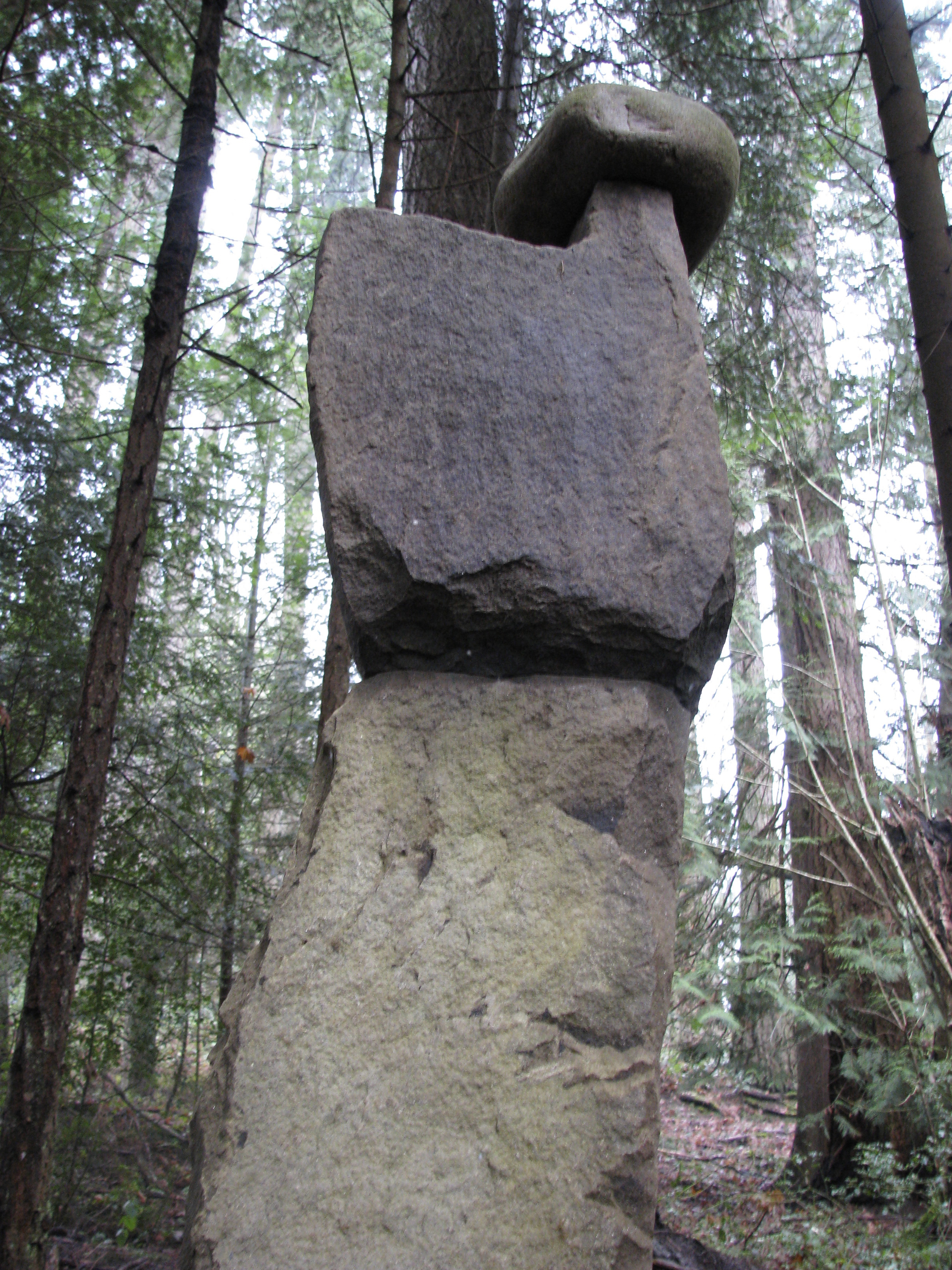 The sandstone sculptures are created by finding and then combining and shaping existing found forms.